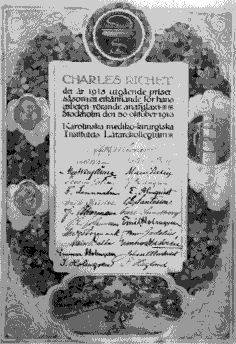 En 1913, le prix Nobel de médecine a été attribué à Charles Richet (1850-1935) pour la découverte, en 1902, de l'anaphylaxie. Claude Richet, professeur de physiologie à la faculté, a été nommé interne en 1872. Ses mémoires inédits mentionnent avec émotion son Internat et sa vie en salle de garde. Les services où il fut en fonction furent ceux de L. Lefort (1852), à l'ancien hôpital Beaujon (aujourd'hui annexe de la Préfecture de police), de A. Richet (1839), à l'Hôtel-Dieu, de Moreau de Tours, à la Salpêtrière, et de A. Verneuil (1843), à la Pitié. C'est encore chez deux anciens internes que débuta sa vie de chercheur, chez le zoologiste De Lacaze-Duthiers (1846) et chez J. Marey (1854), alors professeur au Collège de France. Le texte ci-dessous, relatant la découverte de l'anaphylaxie, a été publié dans les Compte-Rendus de l'Académie des sciences, Elsevier, Série III (1998), tome 321, 261-164. Nous remercions la rédaction des C.R.A.S. de nous avoir autorisé à le reproduire. |